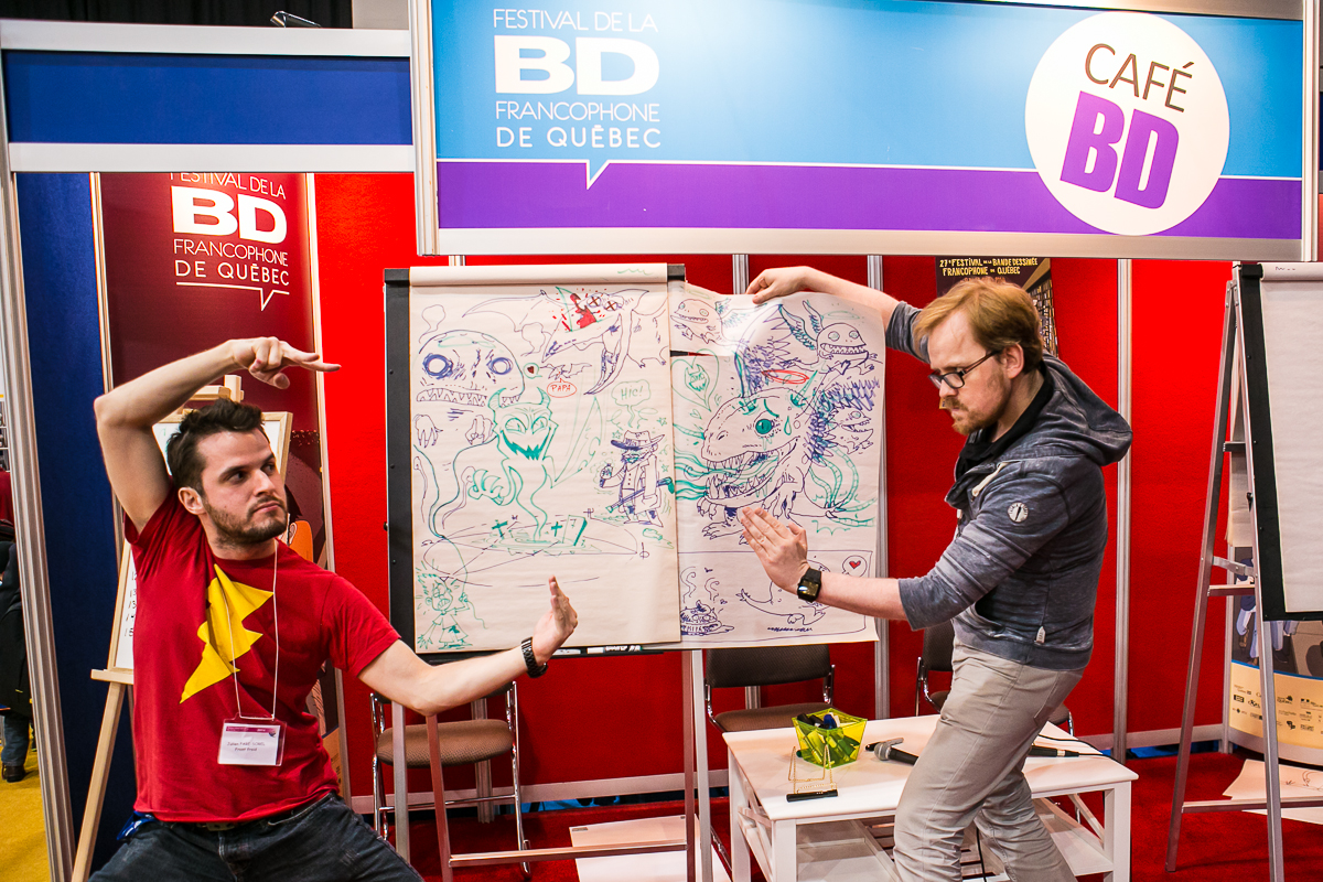 La portion spectacle du FBDFQ, qui a été bonifiée cette année notamment grâce à des collaborations avec deux événements européens d’importance, Lyon BD et Quai des bulles, a aussi trouvé son public. Le spectacle STRIP, présenté au théâtre Petit Champlain en collaboration avec la troupe Burestacular, a fait salle comble. Tout comme la soirée La fièvre des planches, présentée au Musée de la Civilisation en collaboration avec Parenthèses 9. L’impro BD, qui comptait deux présentations, a aussi su maintenir son public qui lui est fidèle depuis la troisième présentation il y a trois ans. «Le FBDFQ va certainement développer le volet spectacle de plus en plus dans les prochaines années. Le succès remporté par les différentes présentations démontre que le public est friand de ce type de rencontre entre le 9e art et d’autres disciplines», poursuit M. Côté.