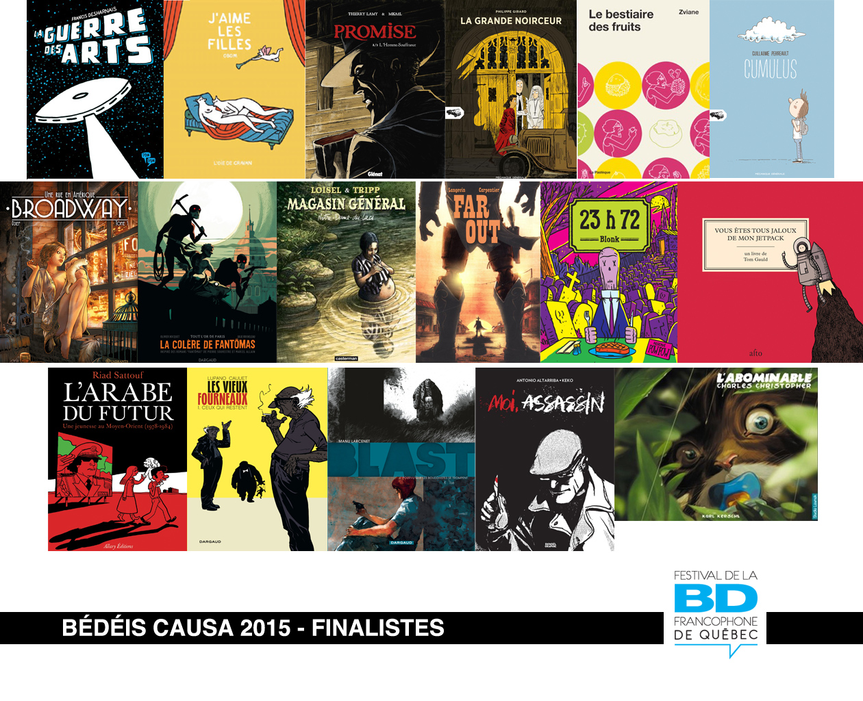 Rappelons que la présente édition des Bédéis Causa porte sur les albums publiés entre le 1er janvier et le 31 décembre 2014. Comme à l’habitude, la sélection des finalistes a été effectuée par un jury formé de libraires et de chroniqueurs spécialisés.
