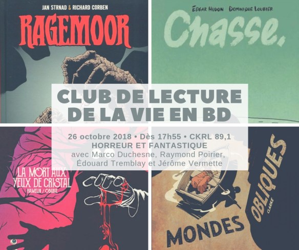 En septembre dernier sur CKRL 89,1, on a le plaisir de débuter un nouveau segment mensuel à La vie en BD : notre club de lecture! À chaque mois, quatre titres – classiques ou récents – autour desquels échangent au fil de 30 minutes endiablées quatre passionnés de #BD : Marco Duchesne, Édouard Tremblay, Raymond Poirier et Jérôme Vermette.