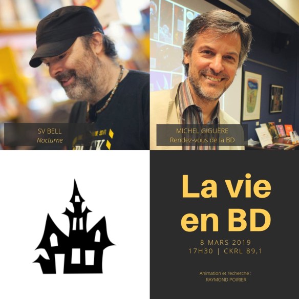 Notre animateur Raymond Poirier reçoit SV Bell, autour du mensuel Nocturne – et autres projets à tendance horrifique de l’auteur. Également de passage, Michel Giguère vient mettre la table pour la prochaine rencontre des Rendez-vous de la BD à la Maison de la littérature. Et plus!