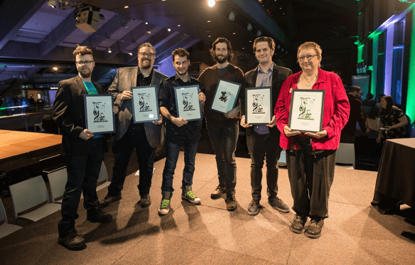 Ensuite, la relève a été mise à l’honneur avec le dévoilement, par Hélène Fleury, cofondatrice du magazine CROC, du lauréat du prix Jacques-Hurtubise, visant à favoriser la nouvelle création et les auteurs émergents au Québec. Ce prix, accompagné d’une bourse de 1 000$ offerte par Brouillard, a été remis à Julien Dallaire-Charest, lui permettant de mener à terme son projet Pogneurs de spectres. L’auteur sera invité à présenter une exposition de son travail lors de la prochaine présentation du Festival Québec BD.