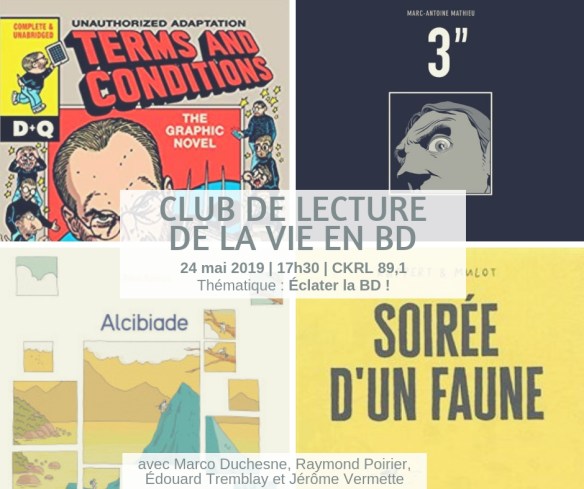 Ce vendredi 24 mai sur CKRL 89,1, à l’occasion de la dernière édition de La vie en BD de la saison radiophonique 2018-2019, on vous propose une nouvelle édition de notre Club de lecture!