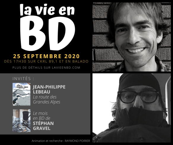 Au programme? On jase de vélo et de voyage en compagnie de Jean-Philippe Lebeau, auteur de la bande dessinée La route des Grandes Alpes (Éditions Alaska). Également de passage : Stéphan Gravel, qui viens nous présenter son «mois en BD» – quelques lectures effectuées au fil de septembre. Et plus!