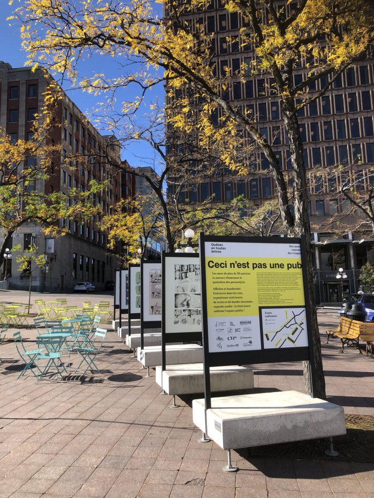 Dans le cadre de l’exposition Ceci n’est pas une pub propulsée par le festival Québec en toutes lettres, les mots de plus de 50 autrices et auteurs illuminent le quotidien des passant(e)s. Affiches et banderoles littéraires dans les rues, expositions extérieures de textes et de bandes dessinées, capsules audio : la littérature sublime l’espace public.