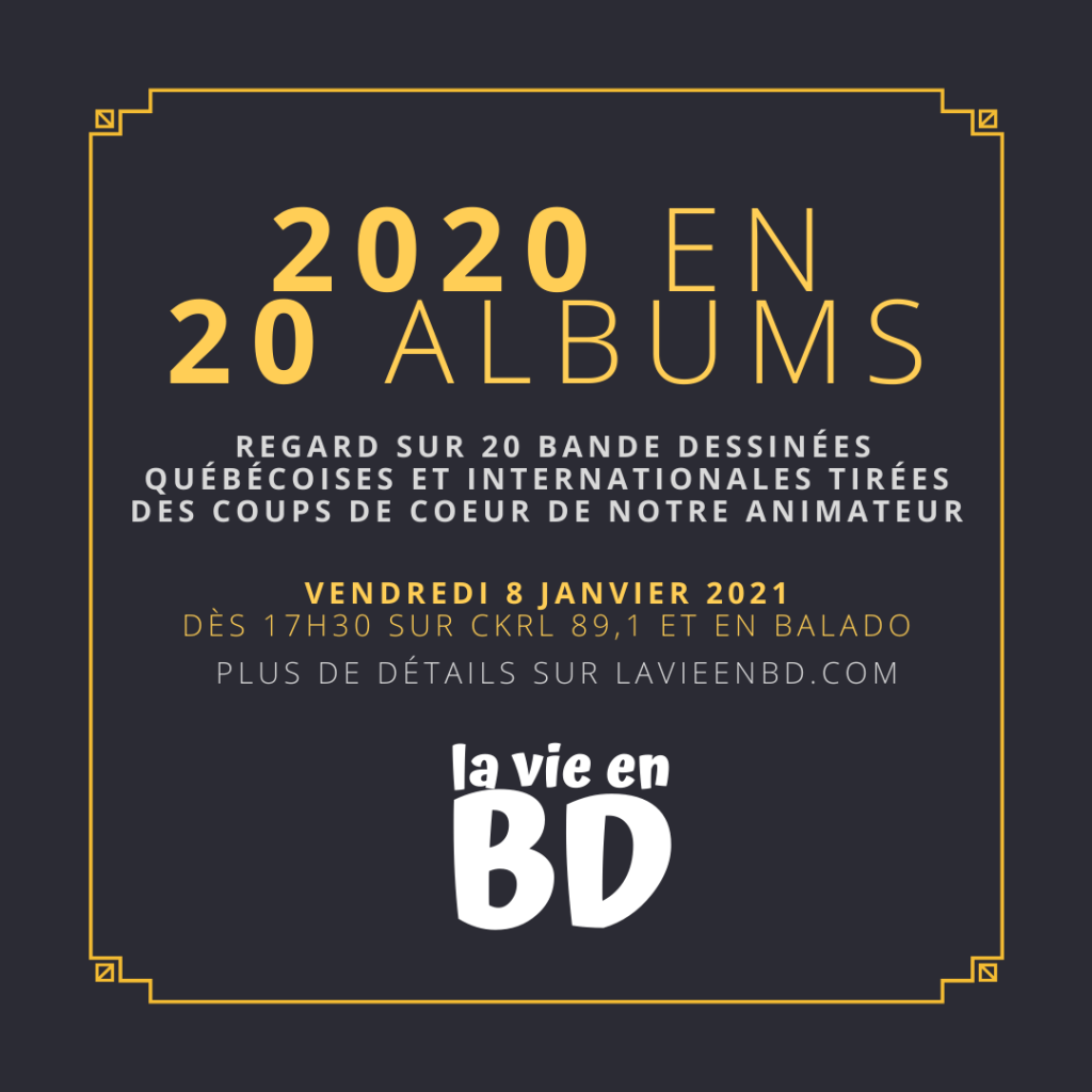 Au menu? «L’année 2020 en 20 albums», alors que notre animateur Raymond Poirier partagera une sélection d’une vingtaine d’albums BD «coup de coeur» tirés des publications québécoises et internationales.