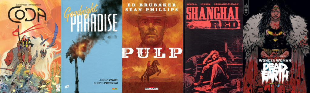 - Pulp, scénarisé par Ed Brubaker, dessiné par Sean Philips, mis en couleur par Jacob Philips. Traduction par Doug Headline (Delcourt)