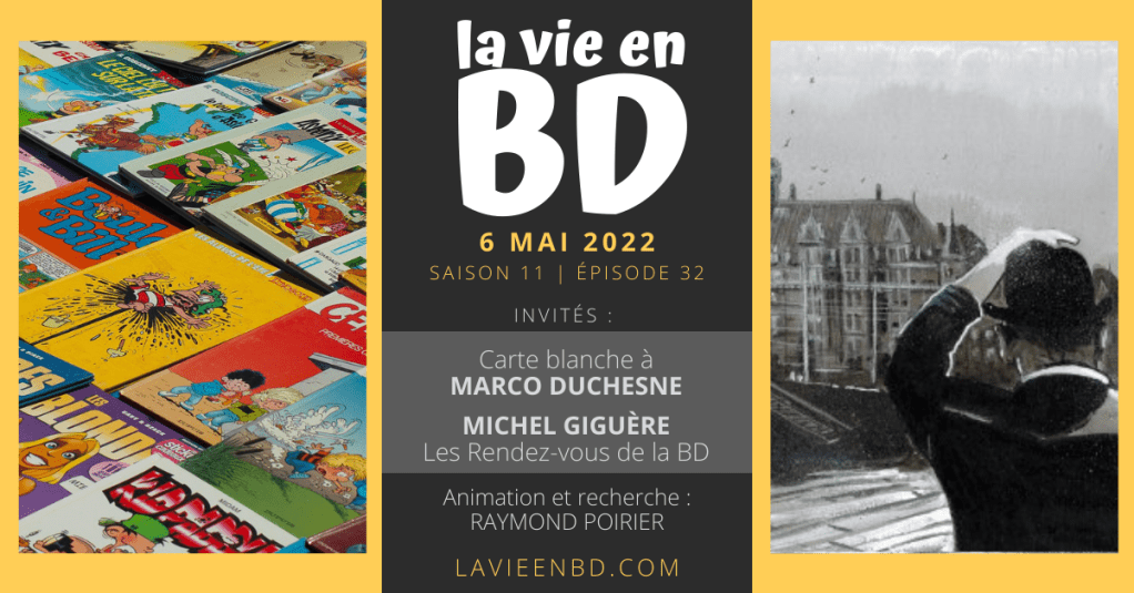 Pour l’édition du 6 mai 2022 de La vie en BD, notre animateur Raymond Poirier offre une carte blanche au libraire Marco Duchesne qui, pour l’occasion, nous amène sur le terrain des reprises de séries BD. Également de passage: Michel Giguère, en amont d’une rencontre des Rendez-vous de la BD à la Maison de la littérature consacrée au 3e âge dans le 9e Art.