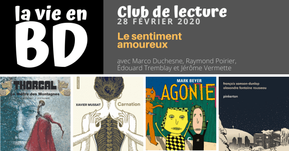 Le 28 février, La vie en BD s’est mise en mode « Club de lecture » avec au micro Marco Duchesne, Raymond Poirier, Édouard Tremblay et Jérôme Vermette.