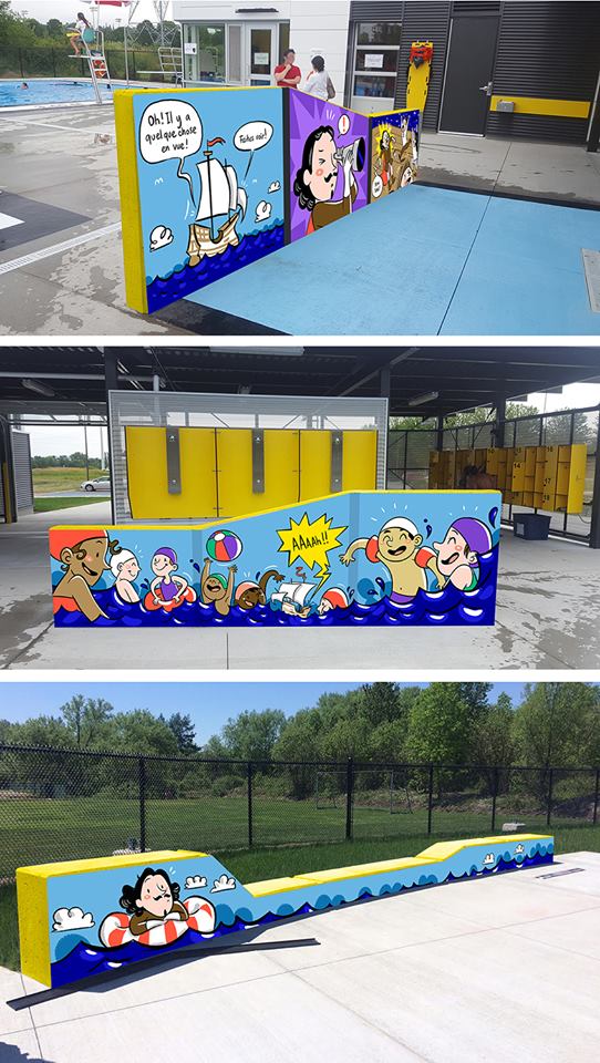 « L’œuvre prendra la forme d’une bande dessinée colorée et ludique, a déclaré Mme Julie Lemieux, vice-présidente du comité exécutif responsable de la culture, du patrimoine et de l’aménagement du territoire. Puisque cette piscine est à proximité d’une école et d’une future aire de planche à roulettes, nous voulions y donner une touche artistique, festive et jeune. Cela démontre que l’art est accessible à tous. »