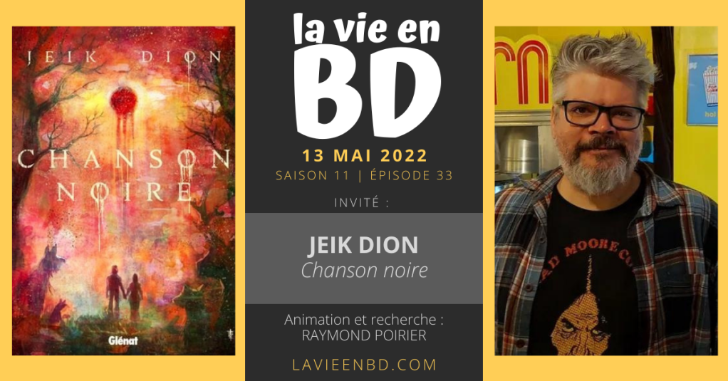 C’est la bande dessinée Chanson noire de Jeik Dion (Glénat) qui est à l’honneur, dans le cadre de l’édition du vendredi 13 mai de La vie en BD. À cette occasion, notre animateur Raymond Poirier échange une heure avec l’auteur, une occasion de parler de musique, d’horreur, d’écriture et de dessin, au fil de l’expérience de Chanson noire.
