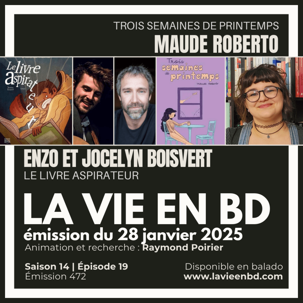 Cette semaine à La vie en BD, notre animateur Raymond Poirier rencontre Jocelyn Boisvert et Enzo, question d’échanger autour de leur bande dessinée jeunesse Le livre aspirateur, premier tome de la série La bibliothèque enchantée publiée aux Éditions Michel Quintin.