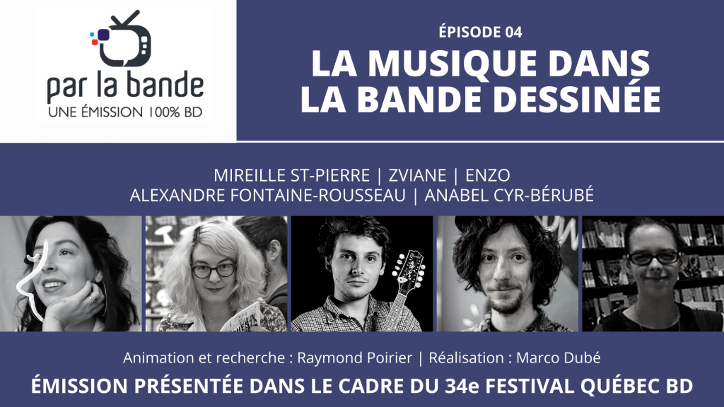 Cette semaine, Raymond Poirier reçoit Mireille St-Pierre (La Brume), Enzo (Ça sent le swing), Zviane (Les Deuxièmes) et Alexandre Fontaine-Rousseau (Pinkerton) pour discuter de la musique dans la bande dessinée. Découvrez aussi les suggestions de lecture d’Anabel Cyr Bérubé (Librairie La Liberté) et un dessin en direct sur la musique de Valence.