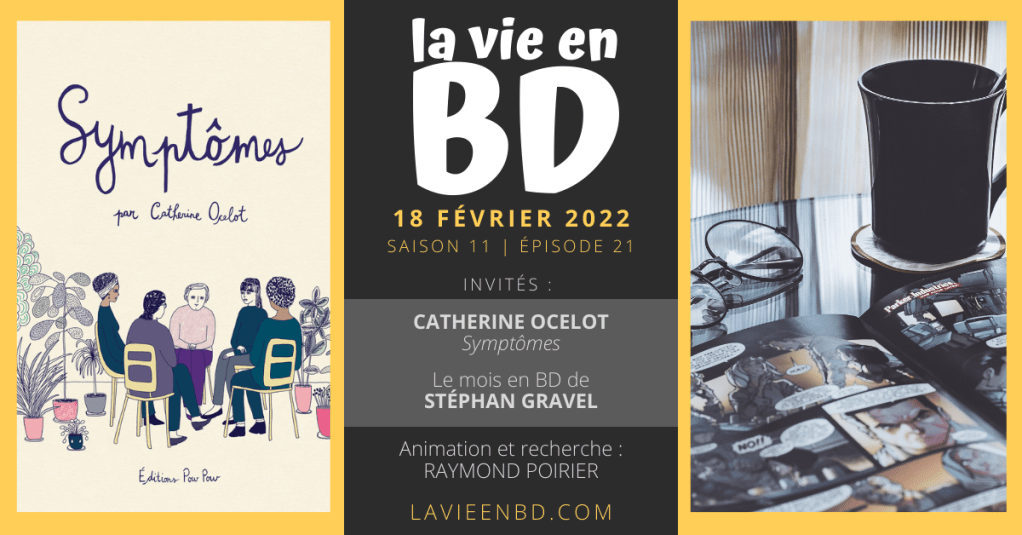 À l’occasion de l’édition du 18 février 2022 de La vie en BD, notre animateur Raymond Poirier rencontre Catherine Ocelot, autour de sa bande dessinée Symptômes, publiée aux Éditions Pow Pow. Également de passage : Stéphan Gravel, pour son «mois en BD». Au programme? Super Groom T1 : Justicier malgré lui, de Fabien Vehlmann et Yoann (Dupuis); Oleg de Frédérik Peeters (Atrabile); et Monstres, de Barry Windsor Smith (Delcourt).