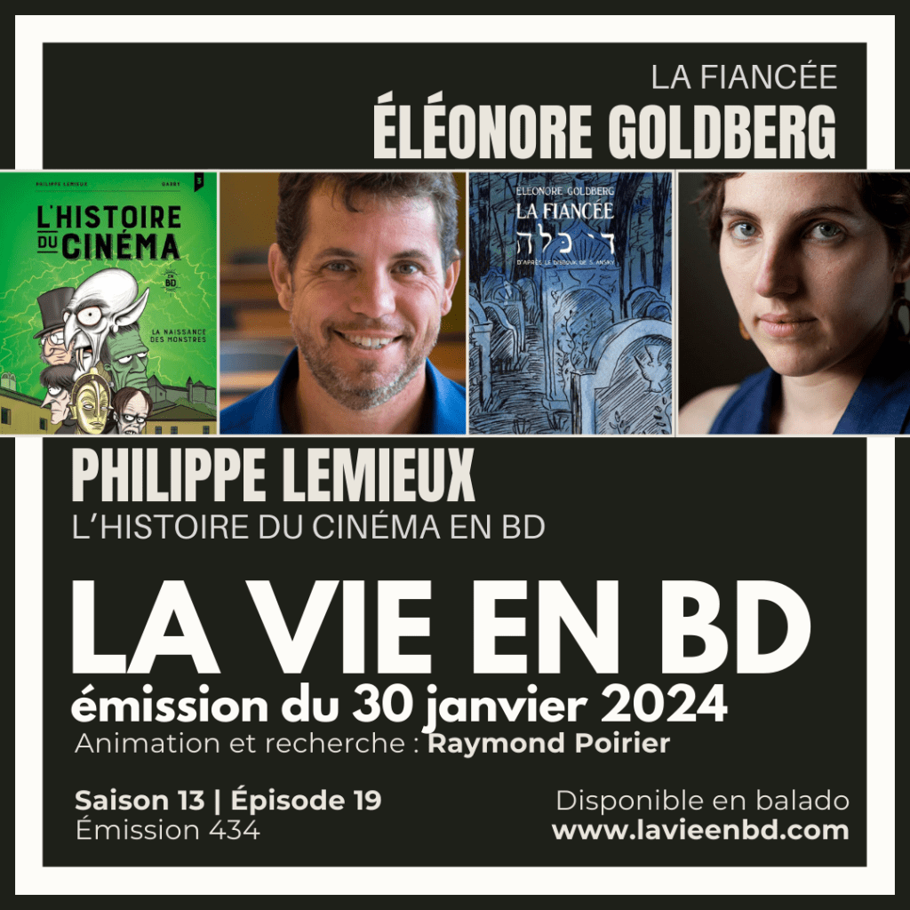 Cette semaine à La vie en BD, Raymond Poirier va à la rencontre du scénariste Philippe Lemieux autour de la série L’histoire du cinéma en BD publiée aux Éditions Michel Quintin. Également de passage: Éléonore Goldberg pour parler de sa plus récente bande dessinée, La fiancée, offerte aux Éditions Mécanique générale.