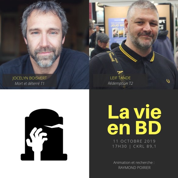 Notre animateur Raymond Poirier échange avec Jocelyn Boisvert, autour de sa bande dessinée Mort et déterré T1 : Un cadavre en cavale, offerte aux Éditions Dupuis. Également, Leif Tande viendra nous présenter le seconde tome de sa série Rédemption, chez Glénat. Et plus!