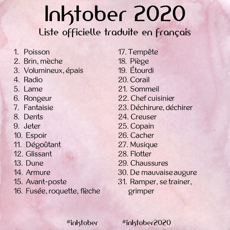 Et, pour vous éviter de chercher les thématiques (version française) du Inktober, sur lesquelles se calquent celles du Readober :
