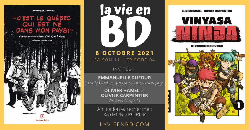 Ce vendredi à La vie en BD, notre animateur Raymond Poirier échange avec Emmanuelle Dufour, autrice de C’est le Québec qui est né dans mon pays (Éditions Écosociété). Également de passage : Olivier Carpentier et Olivier Hamel, autour du premier tome de leur série Vinyasa Ninja, Le Pouvoir du yoga (Presses Aventure). Et plus!