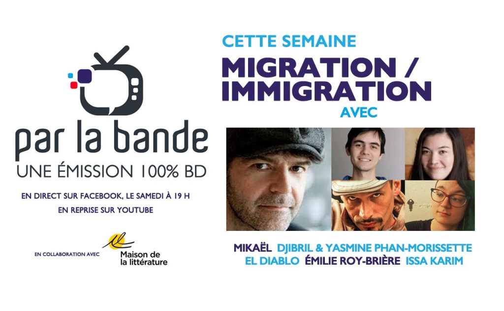 Cette semaine, Raymond Poirier reçoit Mikaël (Giant, Bootblack), Eldiablo (Wesh! Caribou) ainsi que Yasmine et Djibril Phan-Morissette (Khîem, terres maternelles) pour discuter de la migration et de l’immigration dans la bande dessinée. Découvrez aussi les suggestions de lecture d’Émilie Roy-Brière (Librairie Pantoute) et un dessin en direct sur la musique d’Issa Karim.